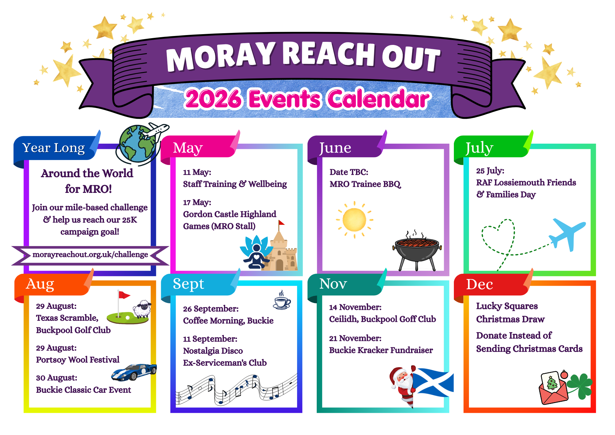 Share your fundraising ideas with us and together, we can transform your passion into powerful support for Moray Reach Out’s life-changing initiatives