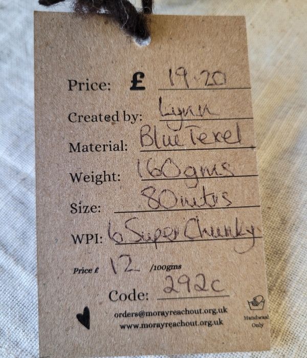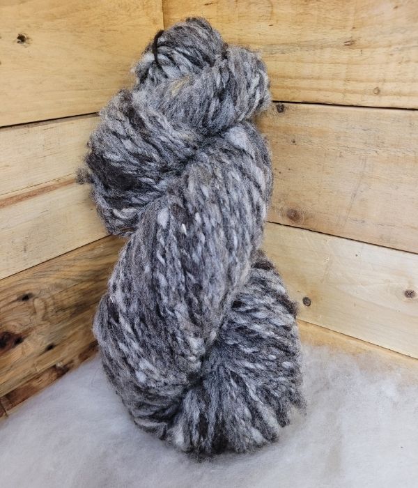 Blue Texel fleece from local farmers. 100% hand-spun, natural wool.